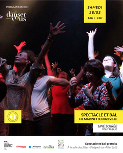 Suite aux ateliers de danse proposés à l'école de Pérignat et la MARPA, les élèves et rési­dents parti­ci­pe­ront au bal inter­gé­né­ra­tionnel avec le public.